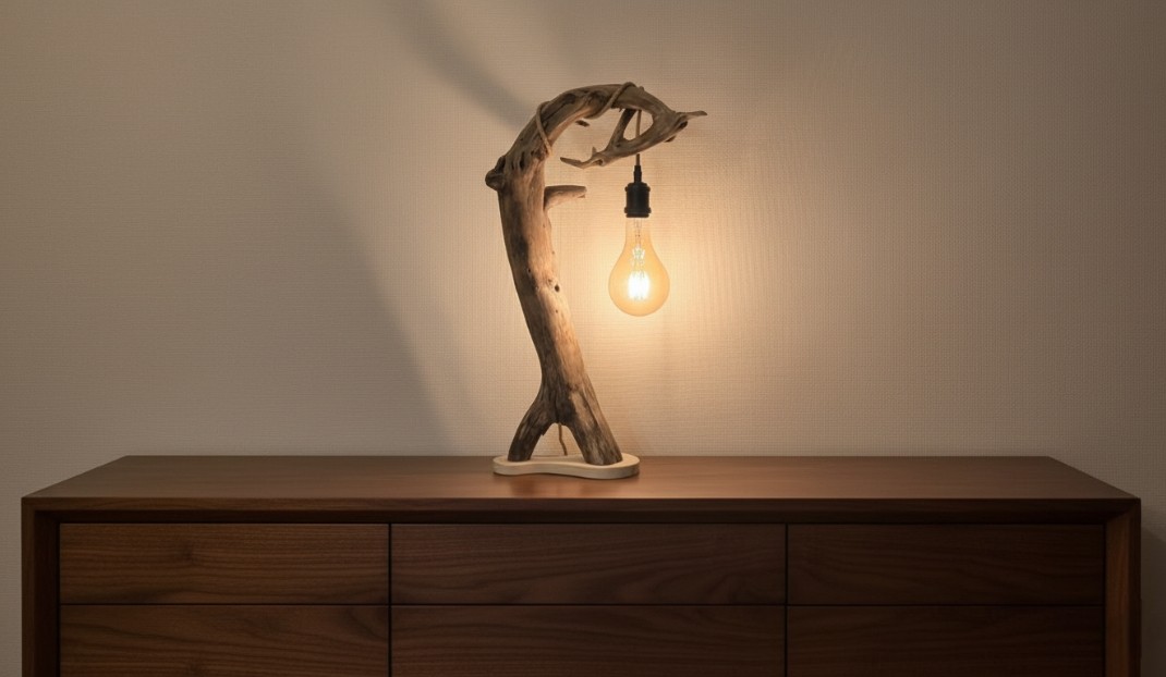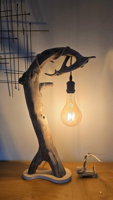 Grande lampe en bois flotté naturelle, pas de vernis ou de cire, le bois est extraordinaire !